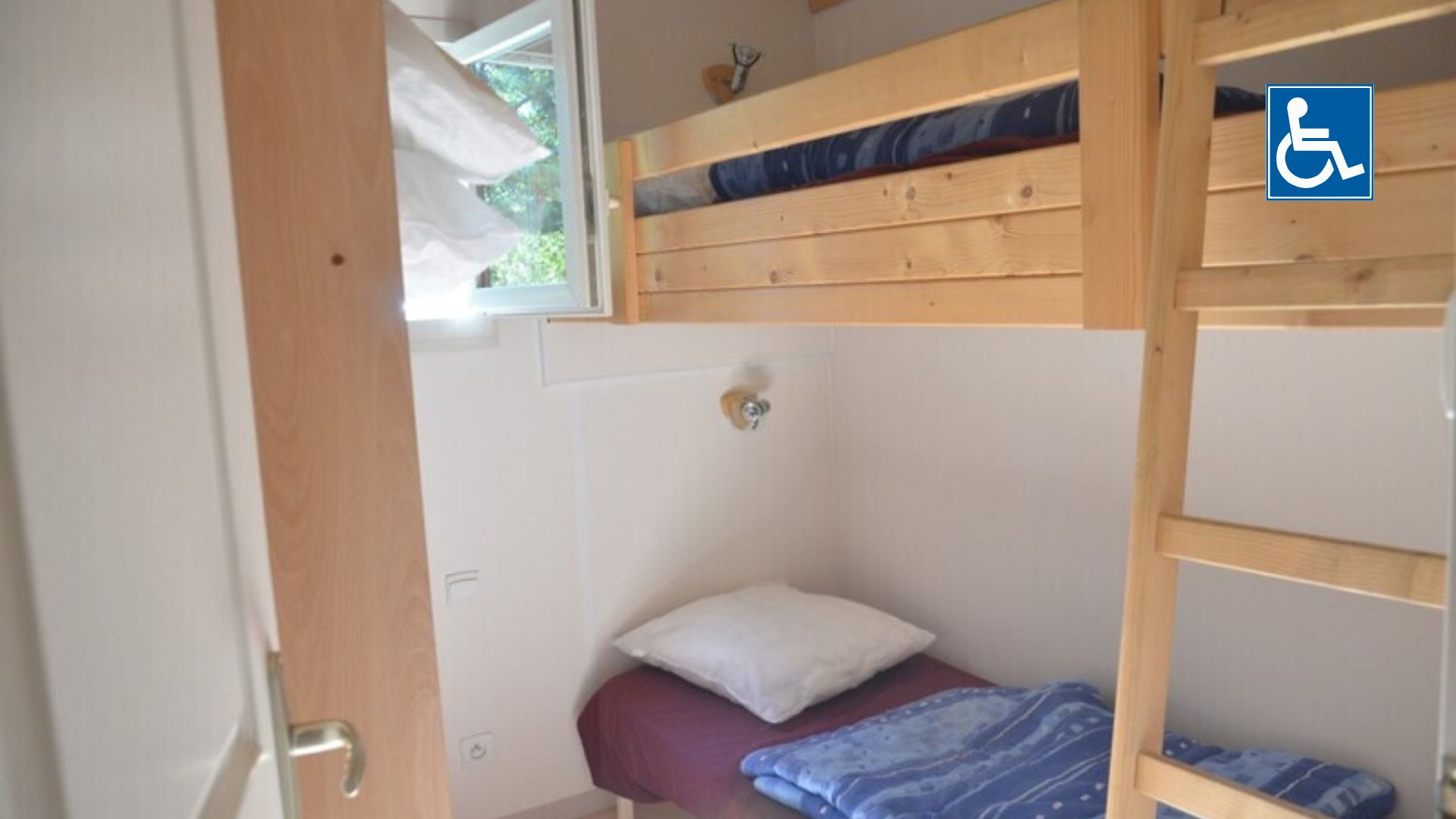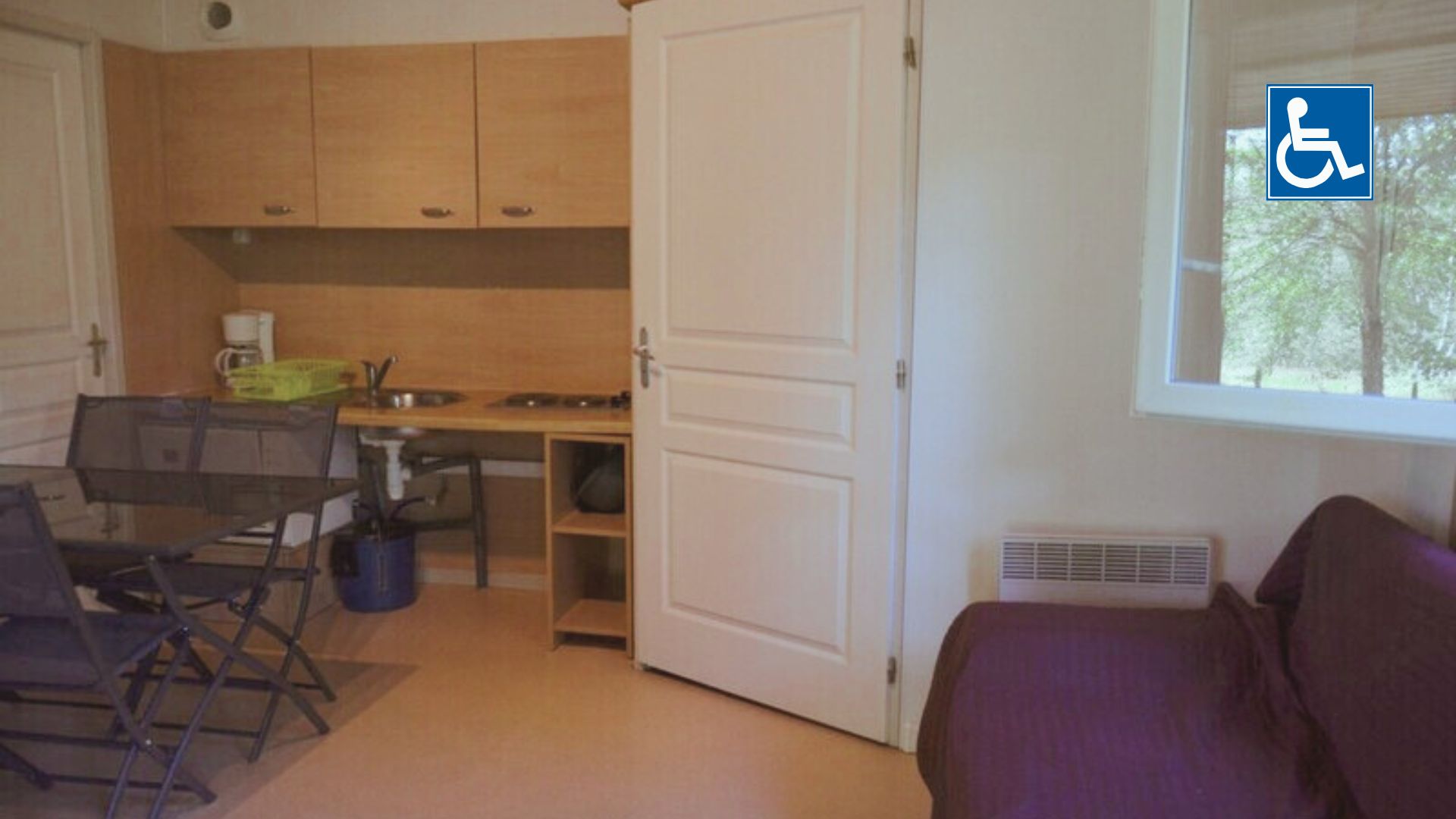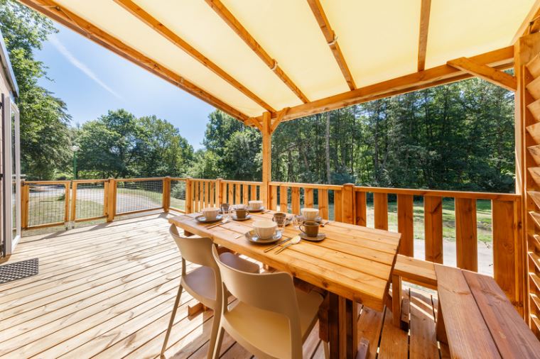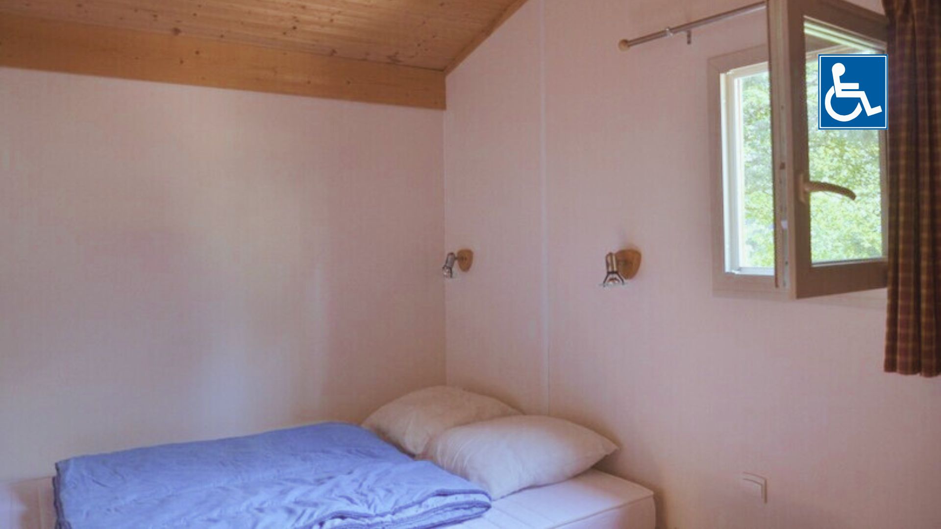Ausgestattet mit einer überdachten Terrasse mit Gartenmöbeln, bieten diese komfortablen Chalets Platz für bis zu 5 Personen. Ideal für einen Aufenthalt mit Kindern oder zwischen befreundeten Paaren! Hier finden Sie verschiedene Unterkunftsarten: Komfort und Komfort PMR.