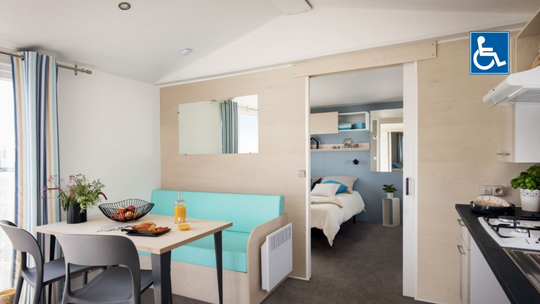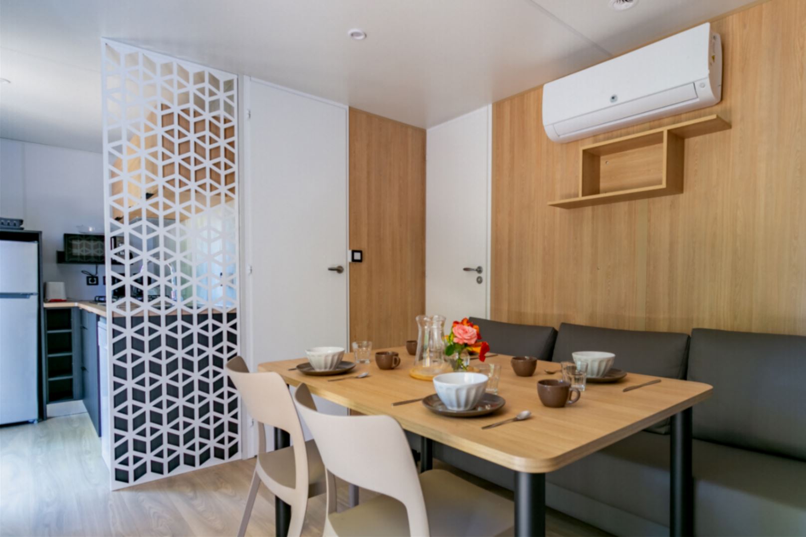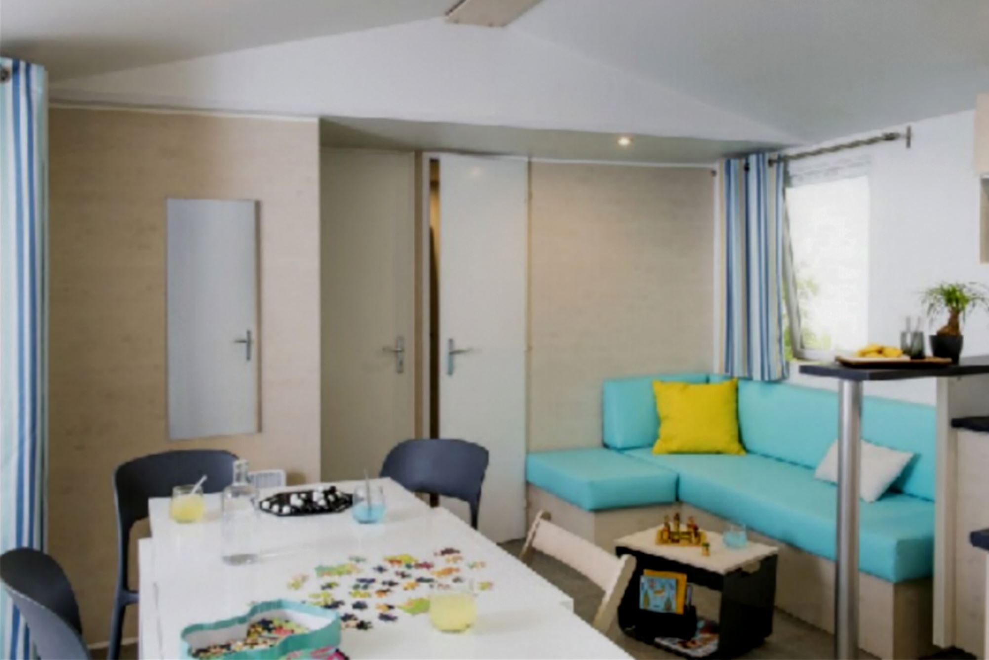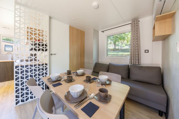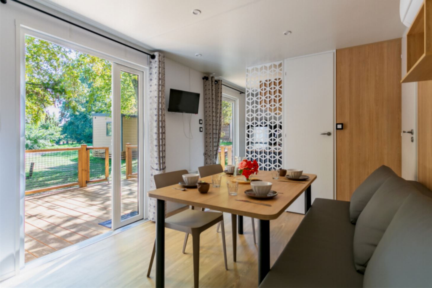 Verliebt, mit der Familie oder mit Freunden? Entscheiden Sie sich für einen angenehmen Aufenthalt mit der Miete eines Mobilheims von 24 bis 34 m² mit allem Komfort und wählen Sie aus unseren Mietunterkünften für bis zu 7 Personen.